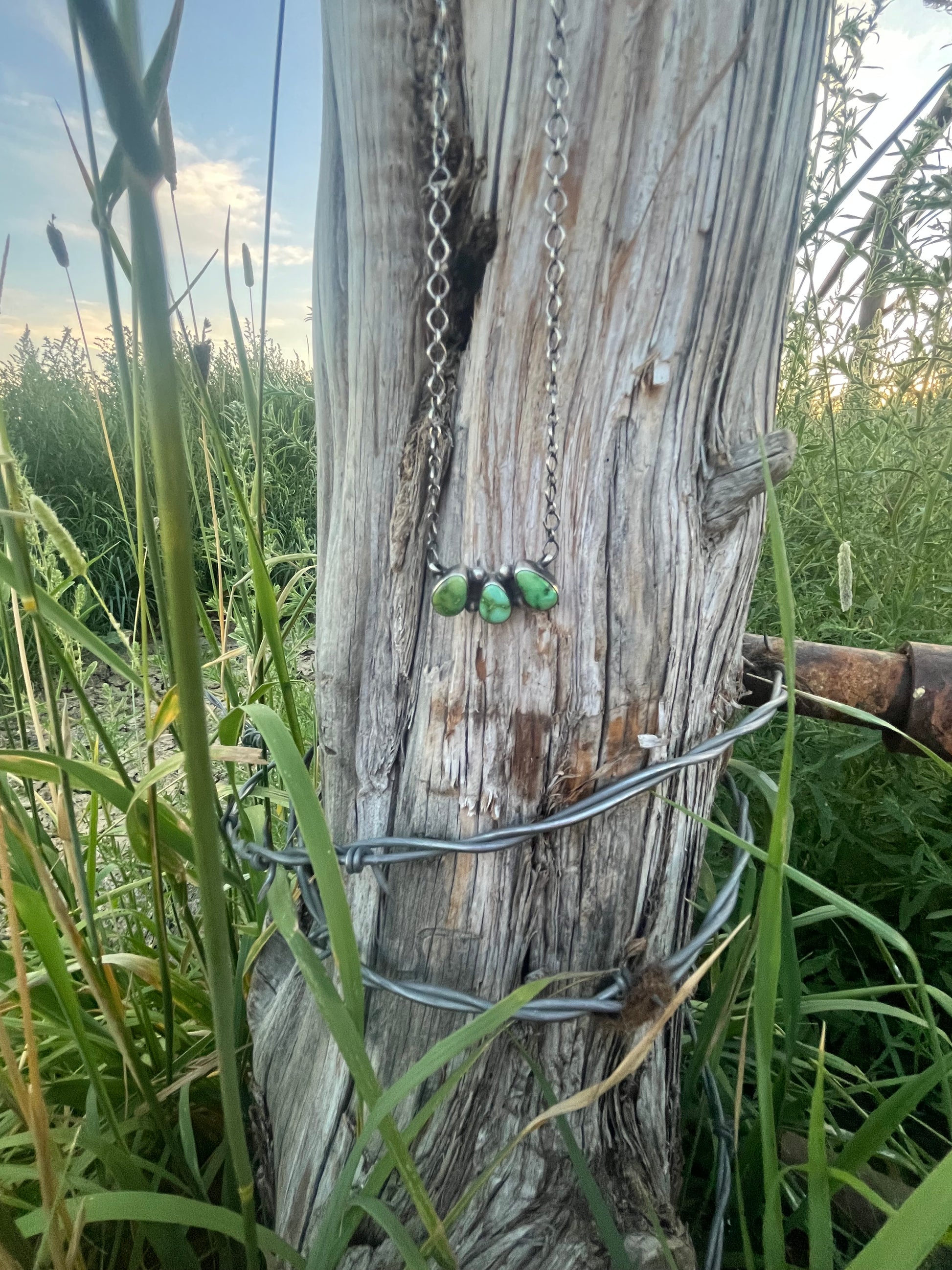 3 Stone Turquoise Chain Necklace