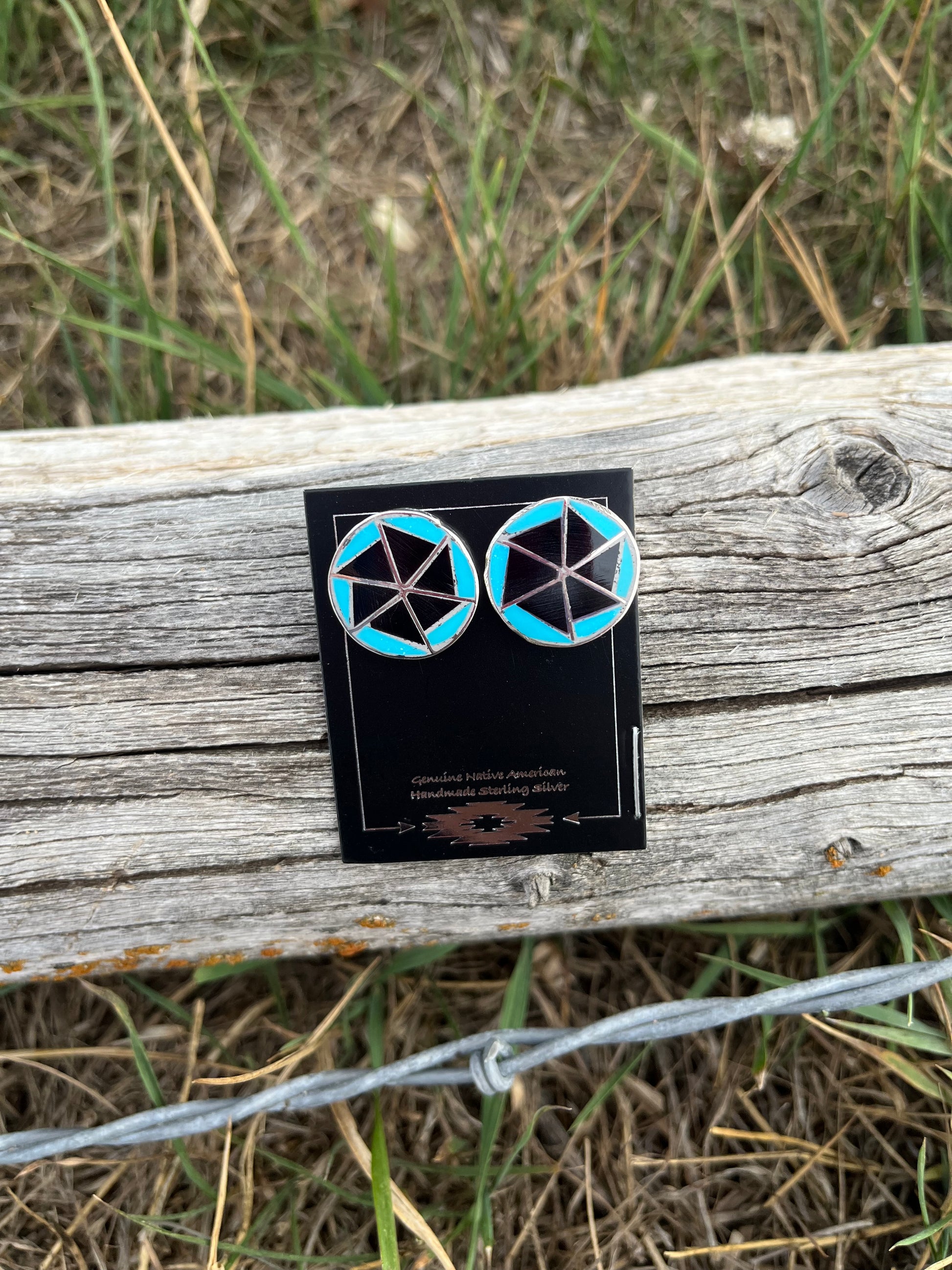 Zuni Made Turquoise and Onyx Earrings